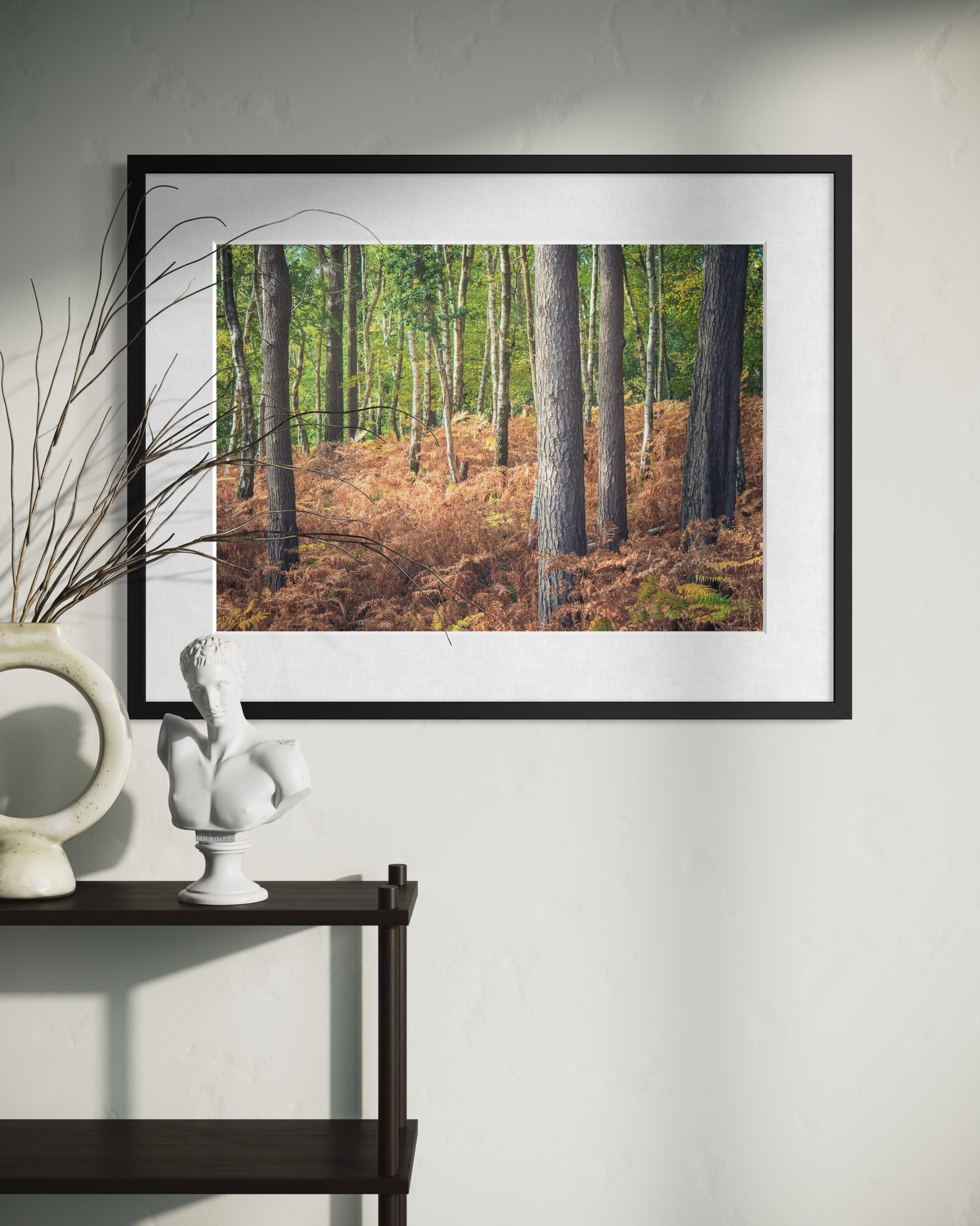 Beautiful soft light, autumn colours and a bed of ferns amid the silver birch trees - woodland photography at its finest. This print will look fantastic in any setting and help you to find tranquility as it recalls long walks, birdsong, squirrels climbing trees and a general sense of well being